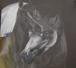 Currently offering custom equine portraits. You may contact me through my email if you are interested in a portrait of your horse; if you truly are interested, I can take a deposit for the work and we can discuss what you want the portrait to be like. If you have a picture in mind you can send it to me as well, along with any other pictures of your horse you think may help. Please also keep in mind that the quality of the picture you send affects the quality of the finished product. Depending on your location, I can also come and take a picture of your horse at an additional cost. Pricing depends on the size of the work, and whether or not you desire a frame . Allow one to two months for completion, depending on the complexity of the photograph, and how many other projects I am working on at the time. Below are several examples of photograph-based portraits I have done, along with in-progress shots for one of the works.